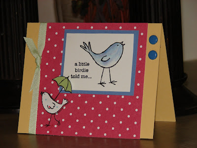I can't believe I'm already posting again today! I am just so excited about crafting lately, it's really been a lot of fun. I moved all my stamping stuff AGAIN! This time I am stationed between the living room and dining area. Having it all sitting there looking cute makes it nearly irresistable. When it was in my bedroom, however, haha, I would get tired and leave quite a mess. :-)